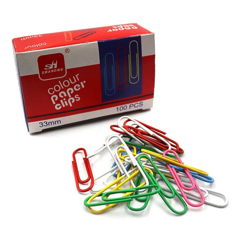 Paquet de 10 boîtes de trombones en métal de 33 mm-50 mm, avec 100 pièces chaque boîte. Trombones adaptés au bureau, à l'école et à un usage quotidien, également utilisés pour l'artisanat, la fabrication d'albums photos, de porte-cartes de visite et de clips pour enveloppes, etc.